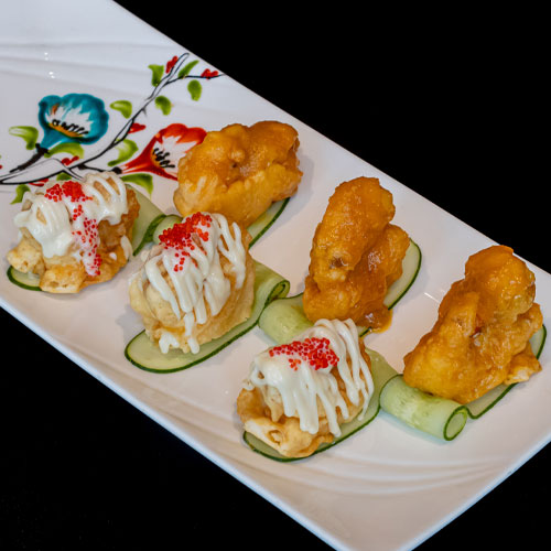 បង្កងមេគង្គបំពងជាមួយពងទាប្រៃ និងវ៉ាសាប៊ិ