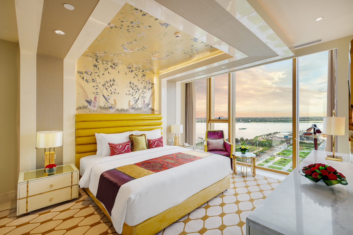 现代而奢华的行政套房拥有71平方米的面积,拥有时尚和精致的装潢,让顾客感受加倍舒适体验。设有相邻的起居室、休息酒廊和办公桌,背靠着金边城市景观和河流交汇处的美景,宽敞的套房是商务旅客的理想之选!